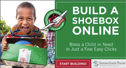 Or…if you prefer to add the personal touches and pack your own box click here for a link to some suggestions and recommendations about what to place in your shoebox. Our shoebox collection deadline is Monday, November 24th, 10am.